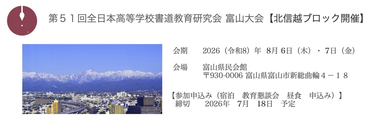 ご案内情報→ 富山大会WEBサイト公開▶︎ 第51回全日本高等学校書道教育研究会富山大会【特設WEBサイトHP】